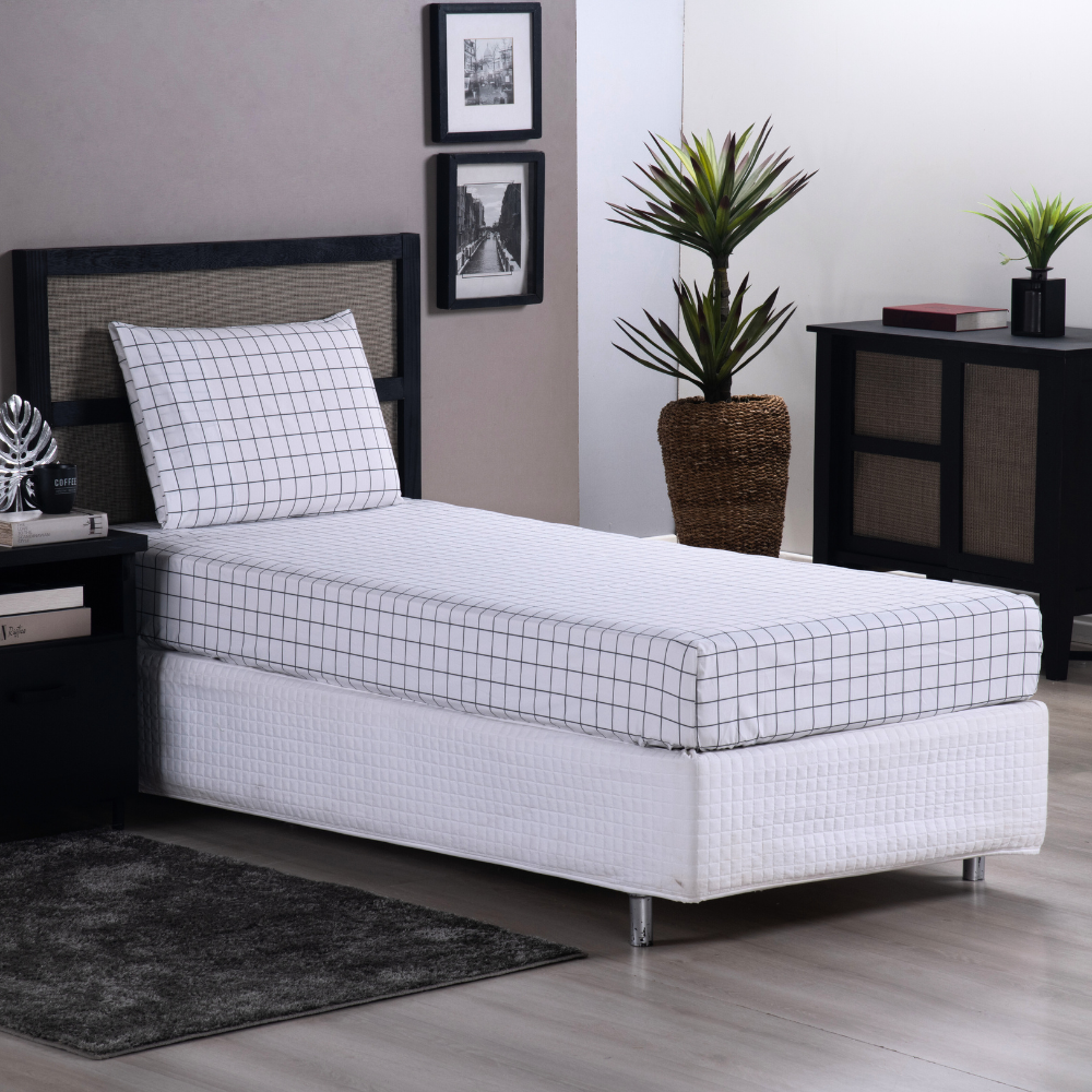 Jogo de Lençol Grid Quadriculado 2 Peças Solteiro 80% Algodão / 20% Poliéster Percal 200 Fios.